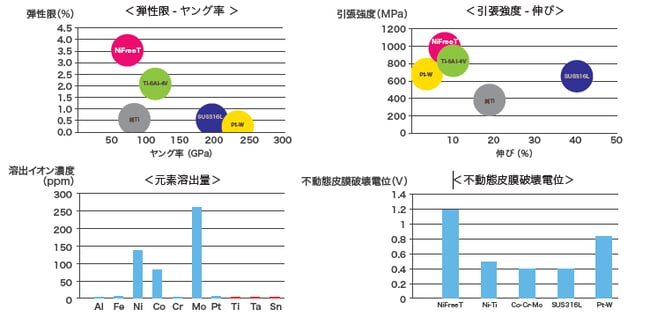 高い引張強度、人骨に近い低いヤング率を有し弾性限が高い性質をもつ非磁性のニッケルフリー合金です。